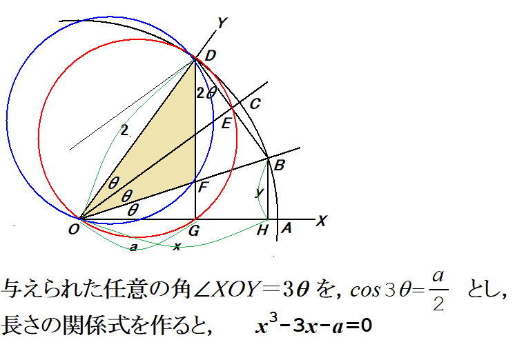 (3)では,x^3-3x-a=0という角3等分の方程式の根であるxの作図が必要です.